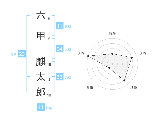 六甲 麒太郎さんの天格は11画の4点!
