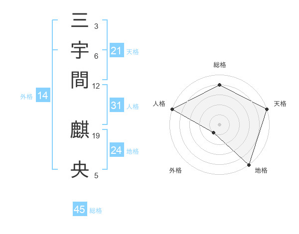 三宇間 麒央さんの総格は45画の4点