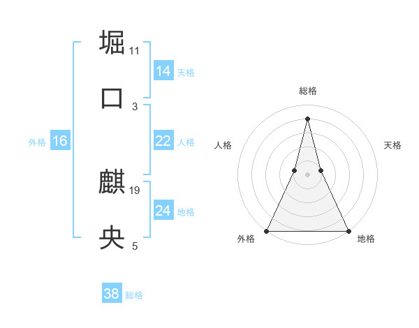 堀口 麒央さんの総格は38画の4点!