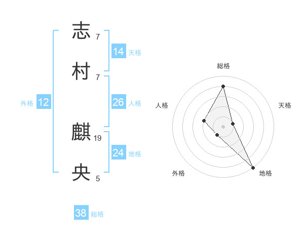 志村 麒央さんの総格は38画の4点!