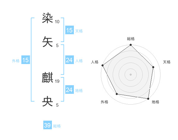 染矢 麒央さんの天格は15画の4点!