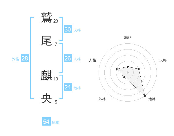 鷲尾 麒央さんを姓名の画数から五運を鑑定