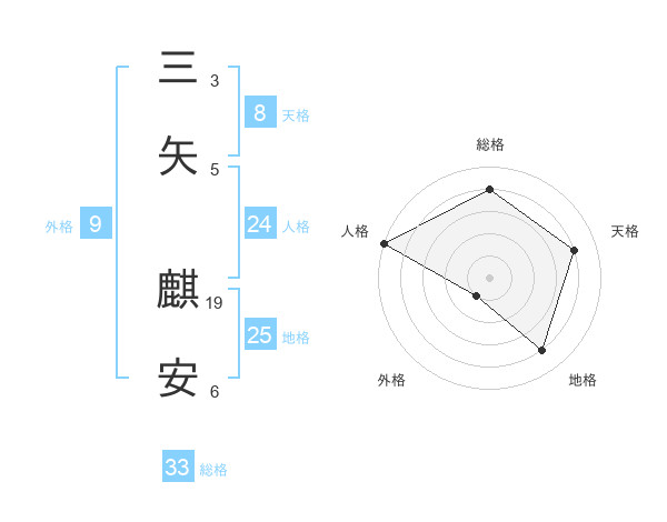 三矢 麒安さんの総格は33画の4点!