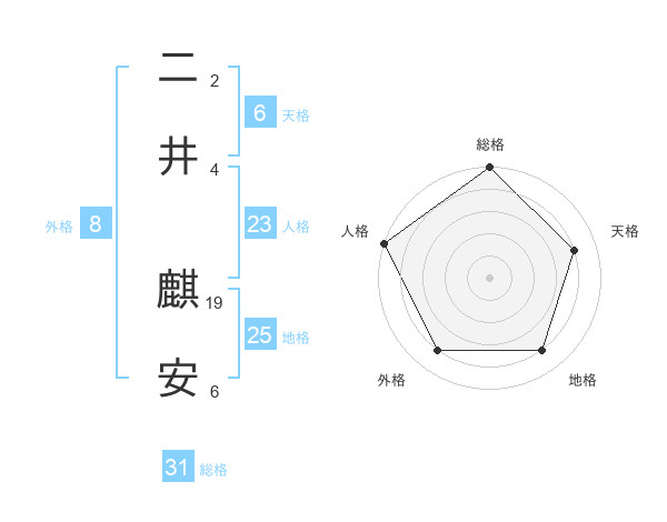 二井 麒安さんの総格は31画の5点!