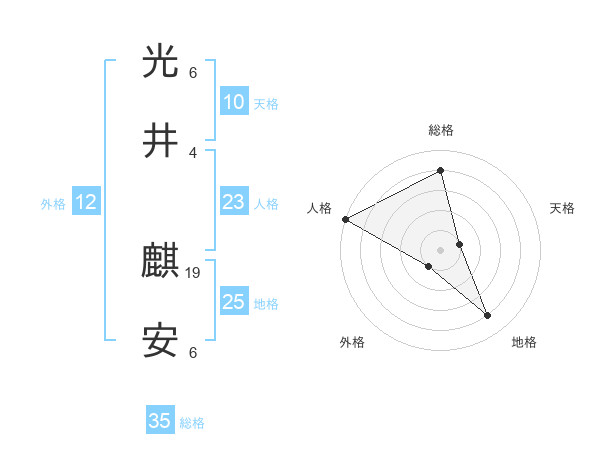 光井 麒安さんを姓名の画数から五運を鑑定