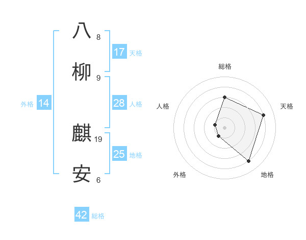 八柳 麒安さんを姓名の画数から五運を鑑定