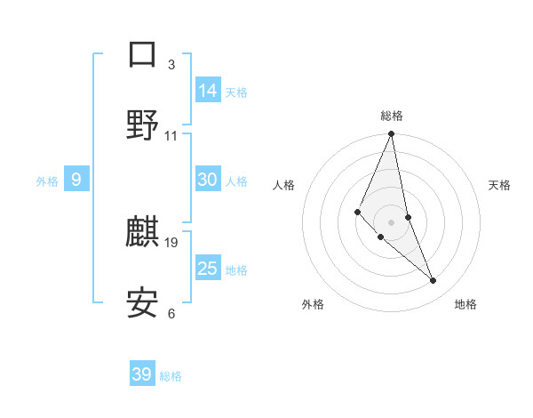 口野 麒安さんの総格は39画の5点!