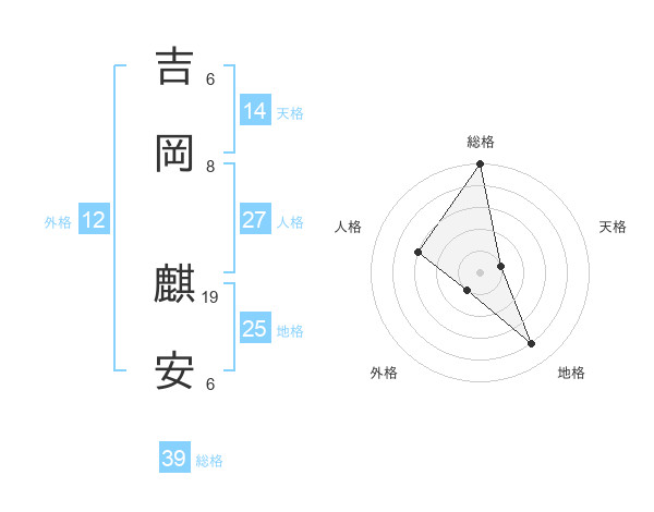 吉岡 麒安さんを姓名の画数から五運を鑑定