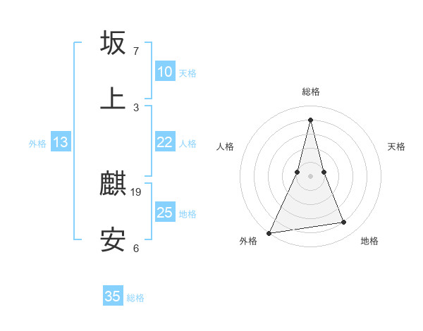 坂上 麒安さんを姓名の画数から五運を鑑定