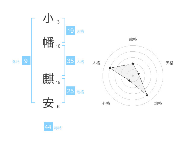 小幡 麒安さんを姓名の画数から五運を鑑定
