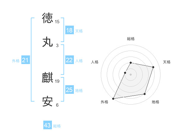 徳丸 麒安さんの外格は21画の5点!