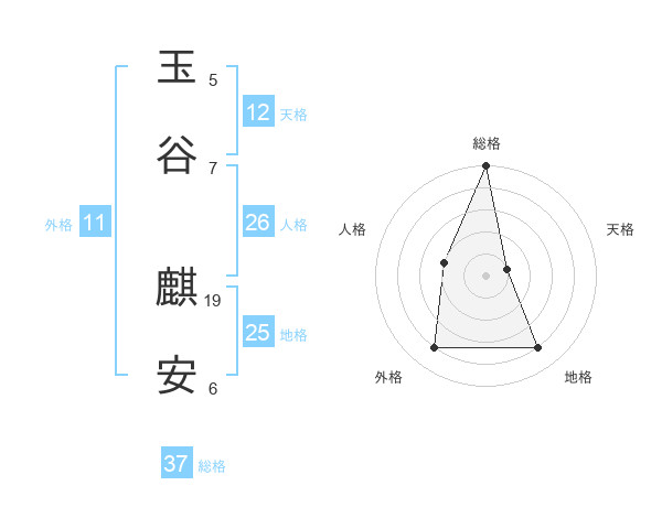 玉谷 麒安さんを姓名の画数から五運を鑑定