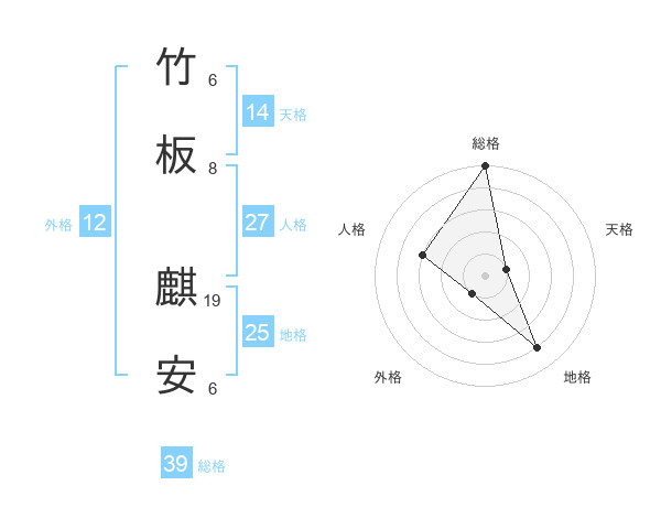 竹板 麒安さんの総格は39画の5点!