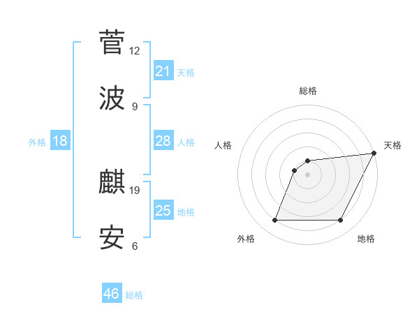 菅波 麒安さんの総格は46画の1点!