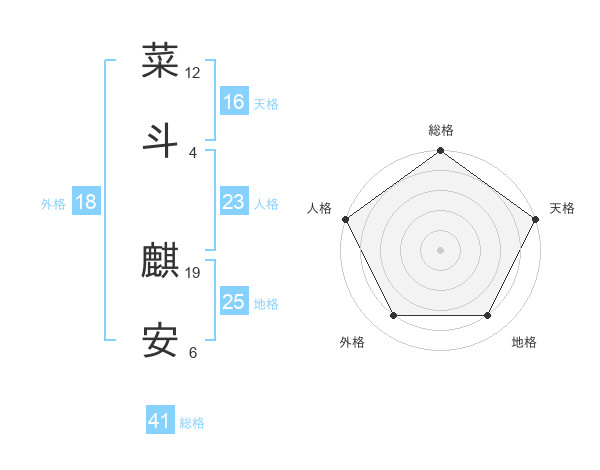 菜斗 麒安さんの総格は41画の5点!