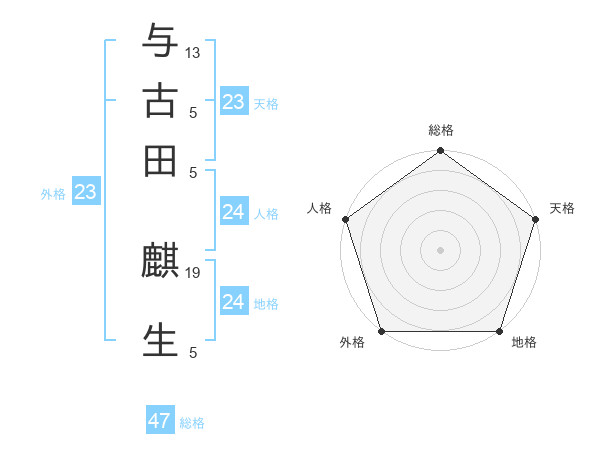与古田 麒生さんを姓名の画数から五運を鑑定