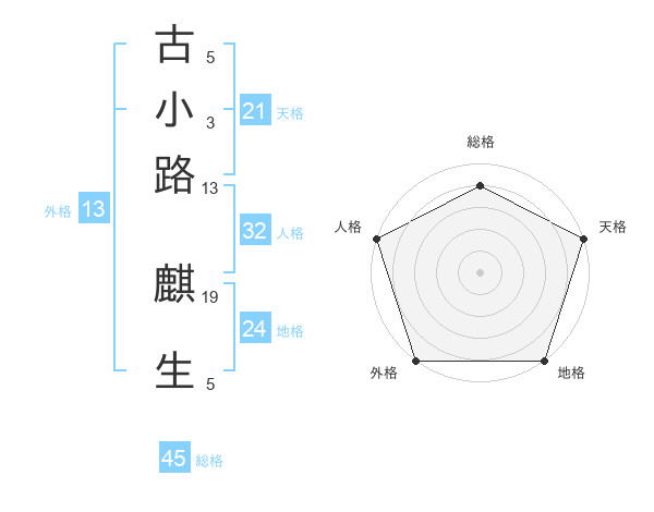 古小路 麒生さんの外格は13画の5点!