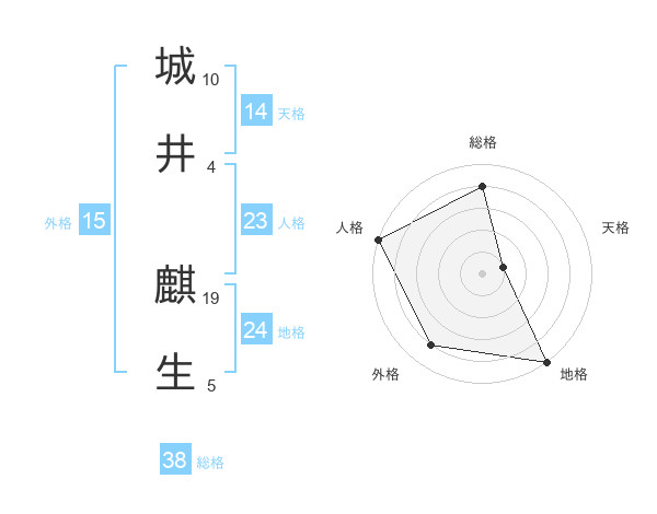 城井 麒生さんの総格は38画の4点!