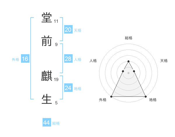 堂前 麒生さんの総格は44画の2点!