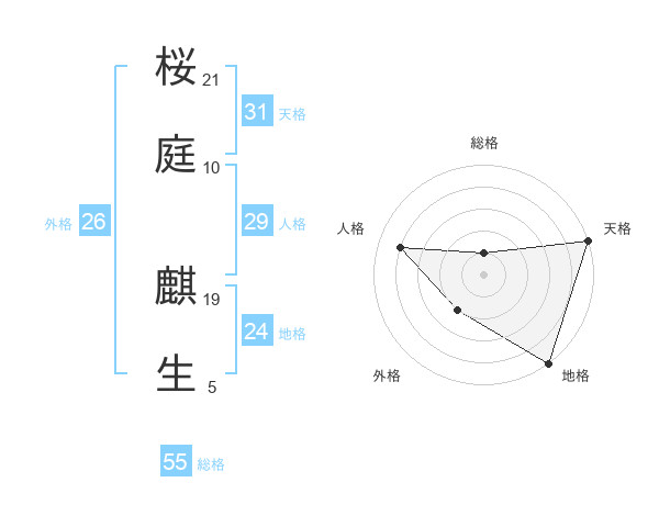 桜庭 麒生さんを姓名の画数から五運を鑑定