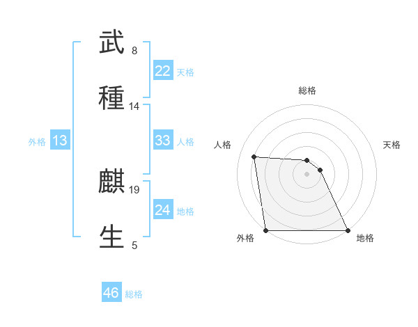 武種 麒生さんの総格は46画の1点!