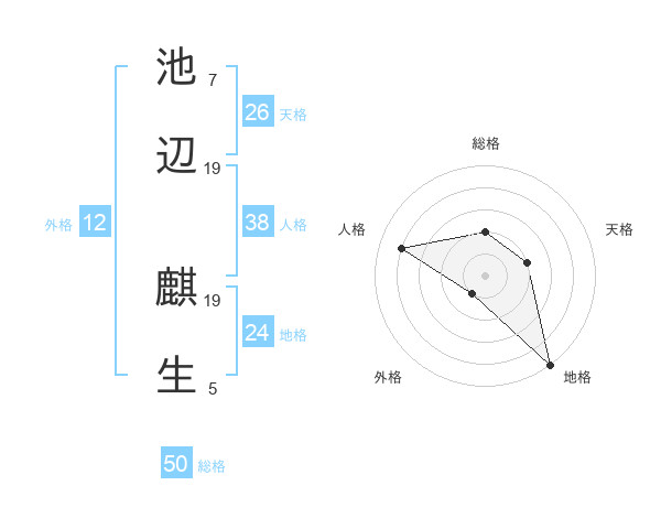 池辺 麒生さんを姓名の画数から五運を鑑定