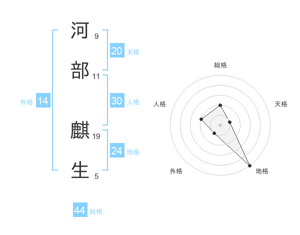 河部 麒生さんの総格は44画の2点!