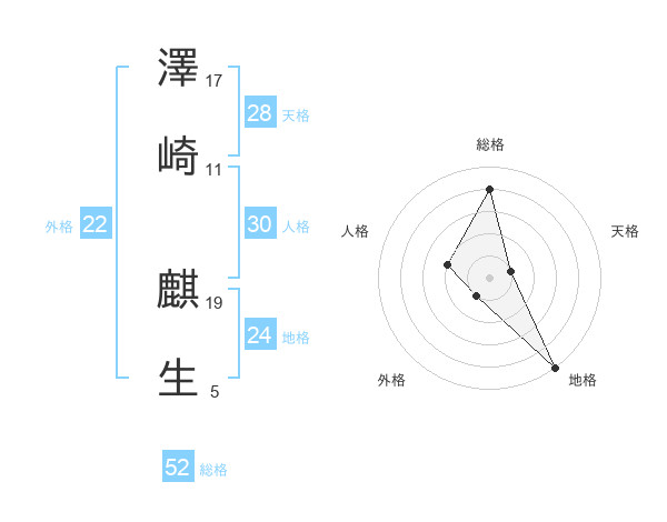 澤崎 麒生さんの総格は52画の4点!