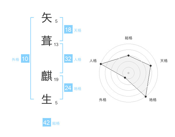 矢葺 麒生さんを姓名の画数から五運を鑑定