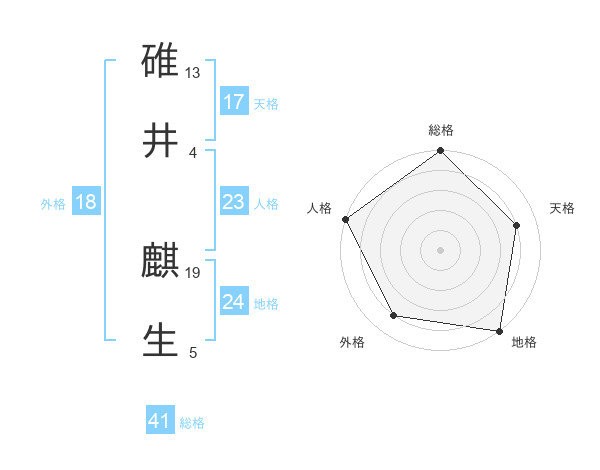 碓井 麒生さんの天格は17画の4点!