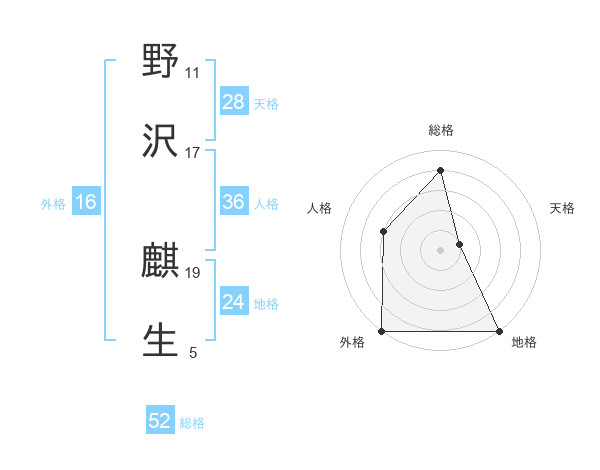 野沢 麒生さんを姓名の画数から五運を鑑定