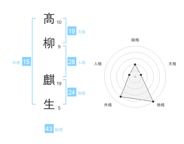髙柳 麒生さんの外格は15画の4点!