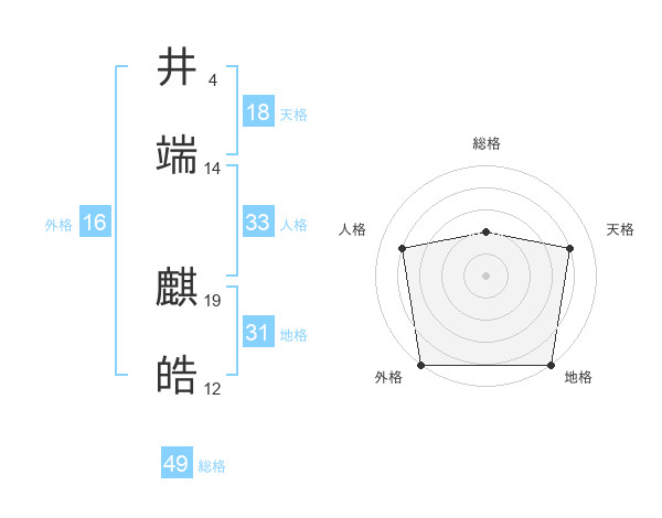 井端 麒皓さんを姓名の画数から五運を鑑定
