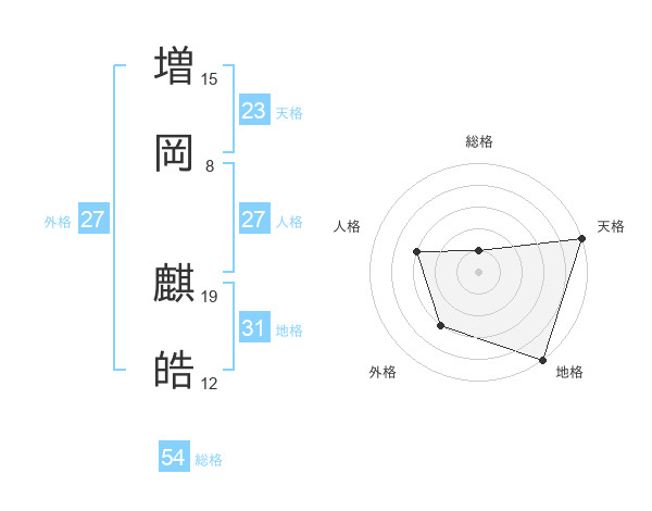 増岡 麒皓さんを姓名の画数から五運を鑑定