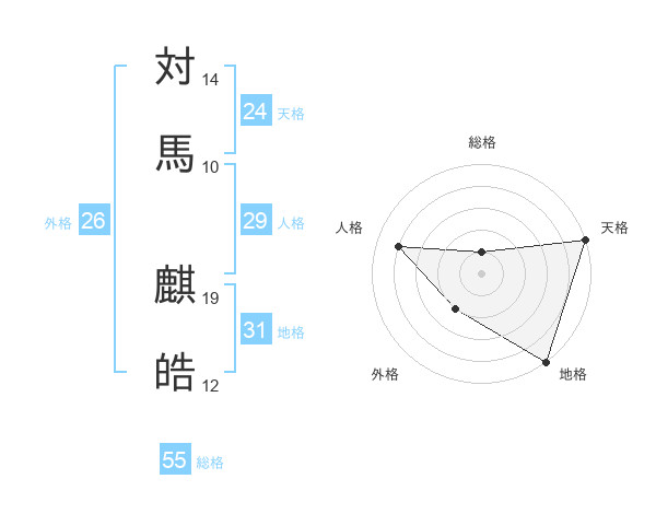 対馬 麒皓さんの天格は24画の5点!