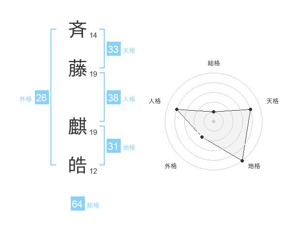 斉藤 麒皓さんを姓名の画数から五運を鑑定
