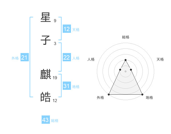 星子 麒皓さんの外格は21画の5点!