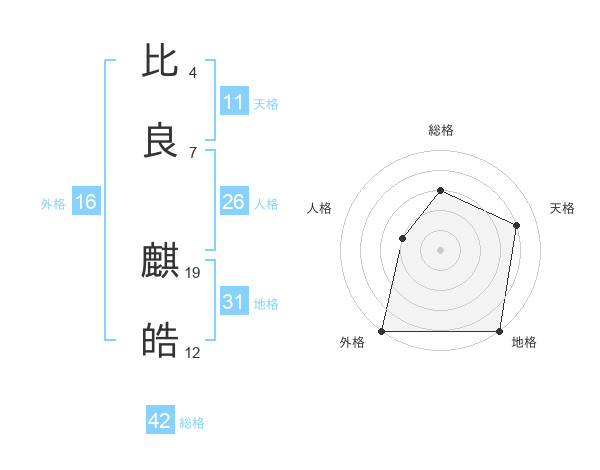 比良 麒皓さんの総格は42画の3点!