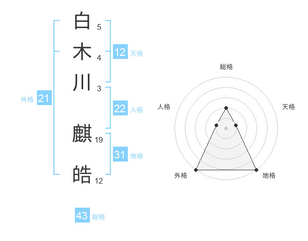 白木川 麒皓さんの外格は21画の5点!