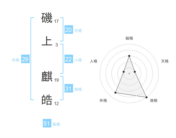 磯上 麒皓さんの総格は51画の3点!