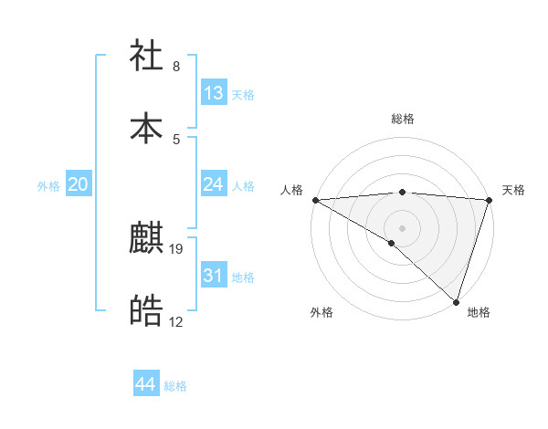 社本 麒皓さんの総格は44画の2点!
