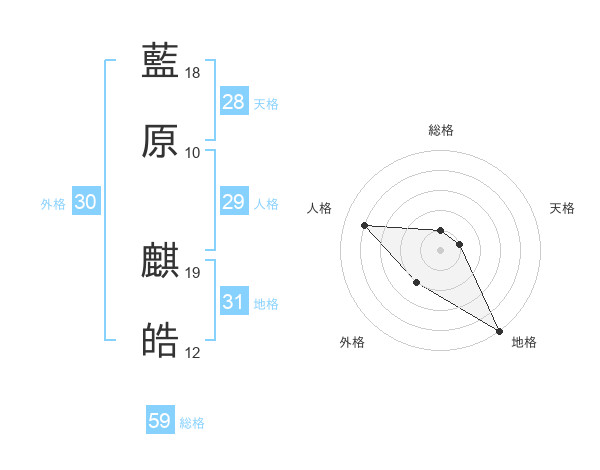 藍原 麒皓さんを姓名の画数から五運を鑑定
