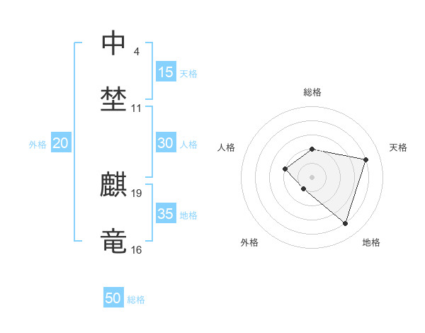 中埜 麒竜さんの総格は50画の2点!