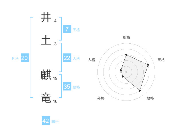 井土 麒竜さんを姓名の画数から五運を鑑定