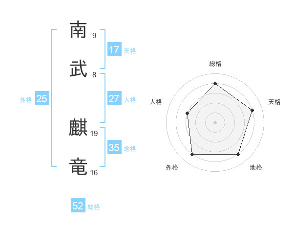 南武 麒竜さんの総格は52画の4点!
