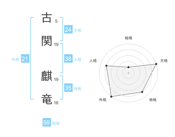 古関 麒竜さんを姓名の画数から五運を鑑定