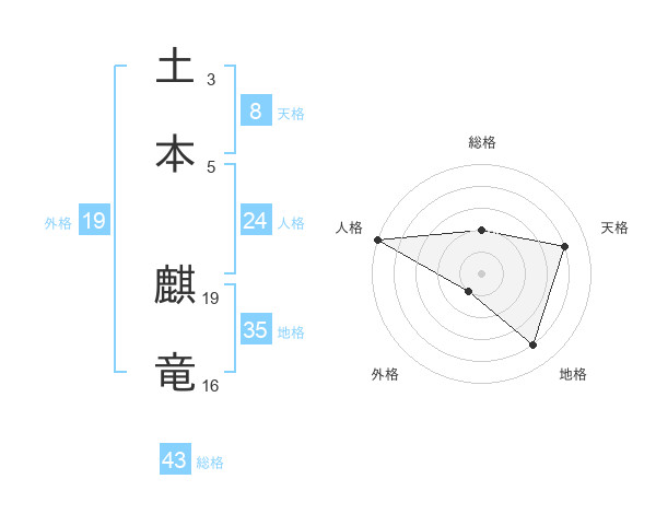 土本 麒竜さんを姓名の画数から五運を鑑定