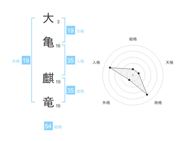 大亀 麒竜さんの総格は54画の1点!