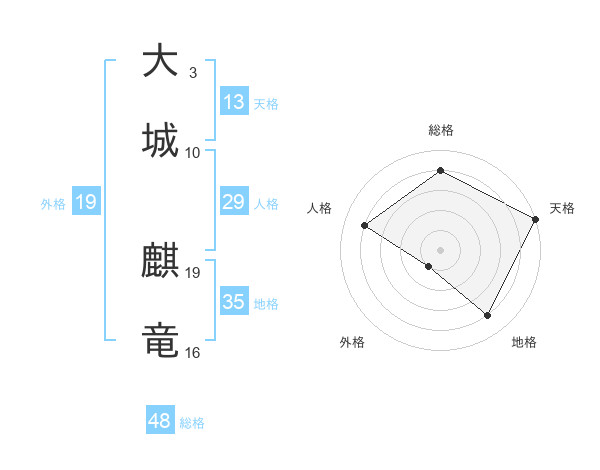 大城 麒竜さんの総格は48画の4点!