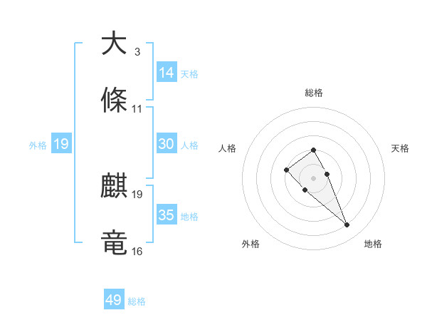 大條 麒竜さんを姓名の画数から五運を鑑定